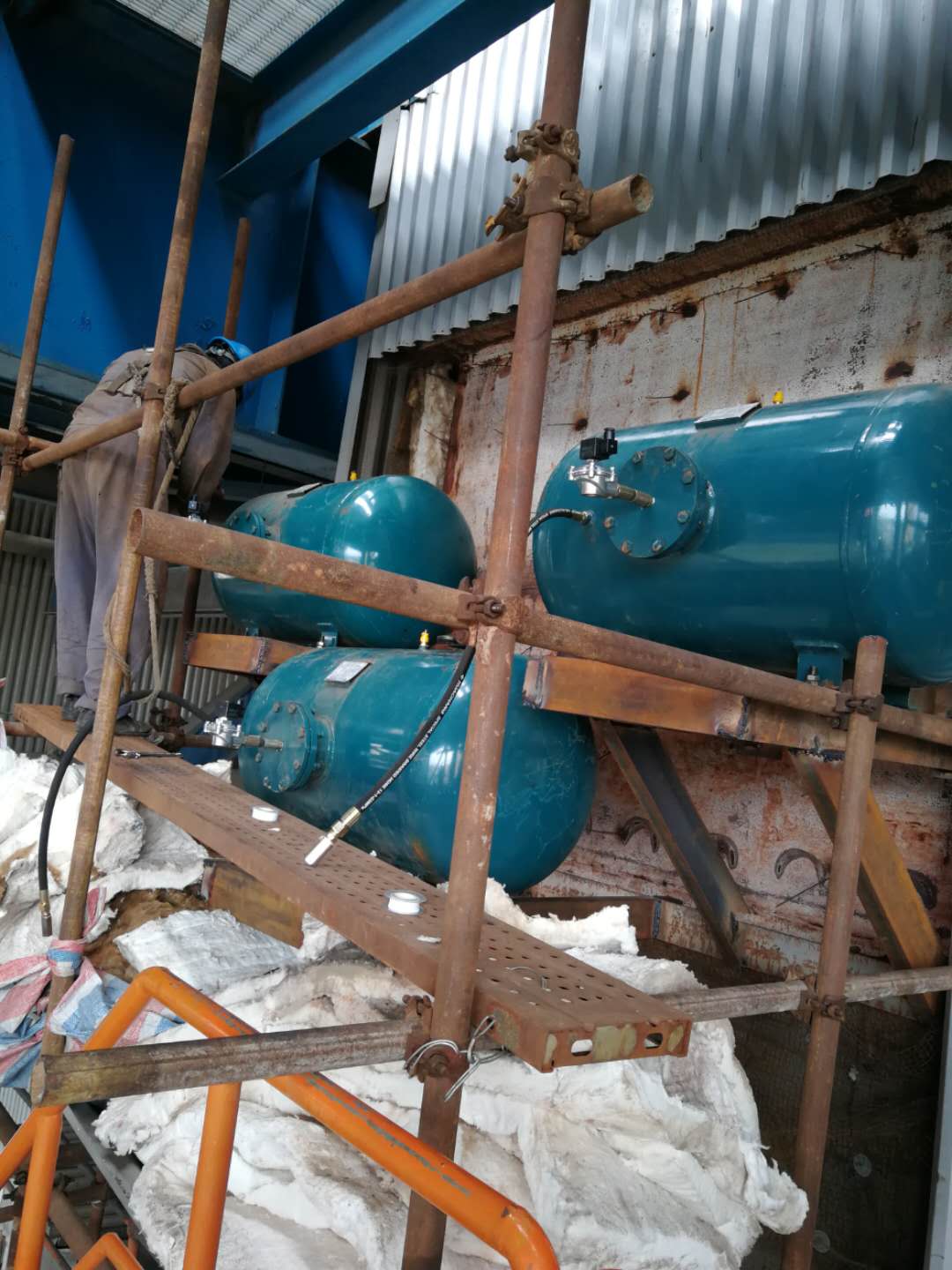瀘州電廠脫硫改造項(xiàng)目設(shè)計(jì)空氣炮型號(hào)為KQP-B-300L,數(shù)量96臺(tái),噴嘴口徑為108耐高溫鑄造鴨嘴形噴嘴,配置控制箱為自動(dòng)不銹鋼雙開(kāi)門,配套單向閥,油水過(guò)濾器。我公司與河南翔龍工程集團(tuán)有限公司(空氣炮安裝),受現(xiàn)場(chǎng)空間限制空氣炮噴管加長(zhǎng)5米到6米左右。安裝完成后現(xiàn)場(chǎng)調(diào)試一次驗(yàn)收合格。